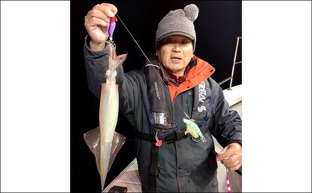 私の釣果はツ抜けを達成し、型もそろったので満足。杉山さんも同数だった。船中サオ頭は胴つきアングラーの34匹。今回オスヤリイカが多かったので、これからが楽しみだ。