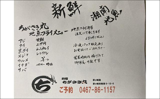 ちがさき丸の地魚フライメニュー(提供:ちがさき丸)
