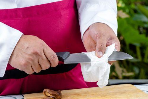 Após lavar a faca, temos o costume de colocá-la para secar naturalmente dentro de porta-talheres, com a parte da lâmina virada para baixo — por questões de segurança, claro. Mas nessas horas, o melhor a se fazer para manter a qualidade da sua faca é secá-la com um pano imediatamente após ter sido lavada. Isso vai evitar a formação de manchas d’água e o atrito da faca com outros talheres.