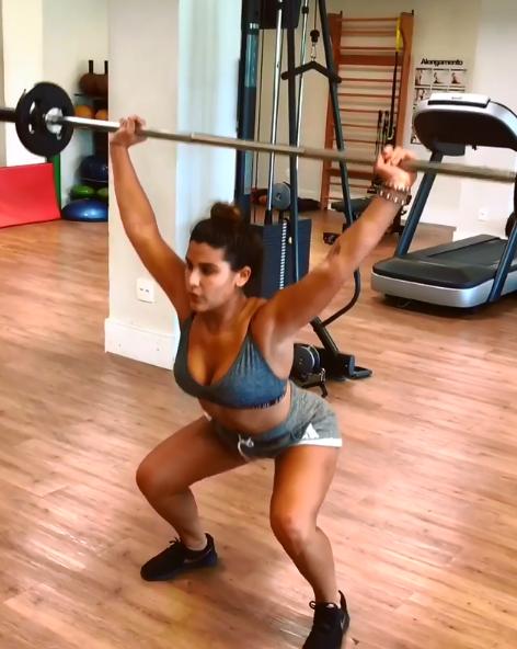 Em seu Instagram, a beldade postou um vídeo dela levantando peso, usando um top e um shorts que exibiam toda sua boa-forma. Na legenda, ela comemorou: “Final de treinooo! E quaaase final de semana ! Uhuuul bom diaa!”