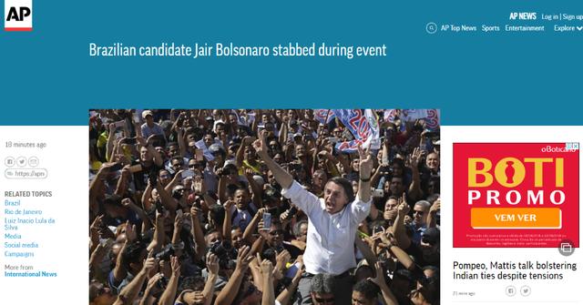 "Inúmeros vídeos nas redes sociais mostram Bolsonaro, cuja plataforma inclui acabar com o crime no maior país da América Latina, sendo atacado com uma faca na parte debaixo de seu estômago", descreveu a agência de notícias Associated Press.