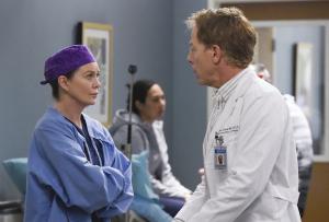 When Bailey checked out the girl, she drew a different conclusion than DeLuca had and, fearing he was on the verge of an episode, ordered him to go home and rest, then report to her office in the a.m. Instead, speaking as quickly as an auctioneer, he told Cindy and Opal that Grey was going to perform the teen’s surgery for free. Yeah, that was gonna go well. Mer and her team — Owen, Cormac, Jo, Hannah and Helm — were already up to their surgical masks in patients! What’s more, pro-bono day was quickly becoming disorganized, a situation made worse when DeLuca had Helm move around operations and operating rooms. “Tell DeLuca to stay off my schedule,” Mer instructed Taryn, “and my floor!” Eventually, though Cindy privately told DeLuca that she just wanted to go home, he spirited her away from her aunt to pre-op. Oh, DeLuca! In the pit, Koracick, sensing just how cranky and restless the patients were getting, told Mer to fix it, and he’d pay the overtime. As a matter of fact, Griffin had given the hospital a big enough donation to hold pro-bono day a couple of times a year. In about half a second, Mer deduced why the inventor had been so wildly generous. “Wow,” she told Tom, “I didn’t know you were that dirty.” (Right, ‘cause only Mer can break the rules for a good cause!)