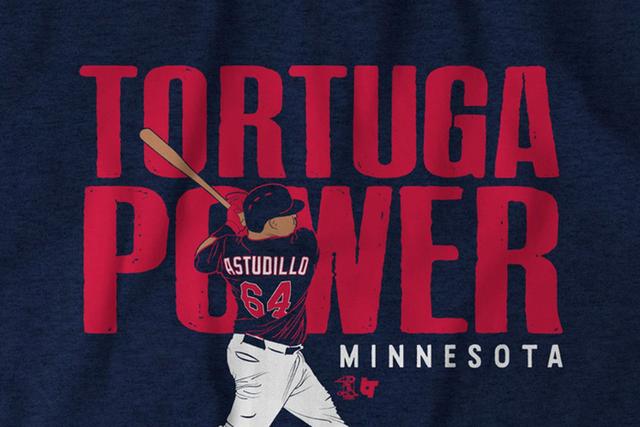 On the super comfortable Navy heather shirt you will find the words “Tortuga Power” in big red letters, as well as a stylized image of Astudillo. Take another look at at this awesome thing: