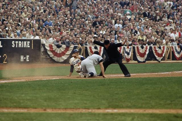As was common this Series, the Dodgers broke through first off Mudcat Grant, Jim Gilliam sending a blast over the left field wall to give the home squad a 2-0 fifth-inning lead.