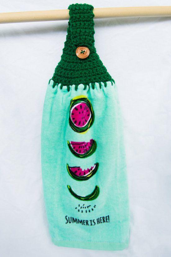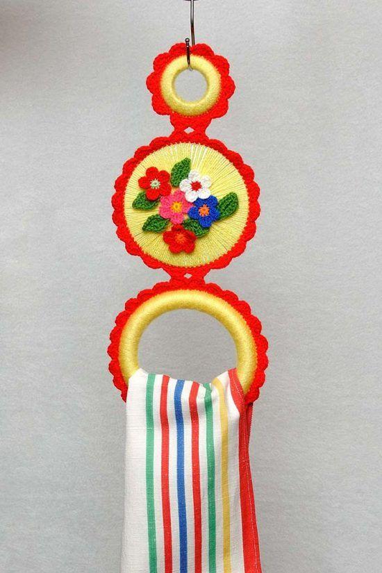 Esse artesanato tão tradicional nos lares brasileiros pode ser aplicado com muito sucesso na confecção de porta panos de prato. Para quem domina a técnica, essa pode ser uma boa opção para as horas de relaxamento e até para ganhar uma renda extra, já que você pode vender as peças produzidas.