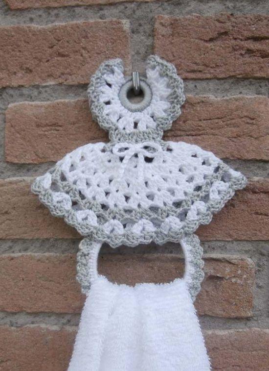 Imagem 10 – Vestidinho de crochê segura com delicadeza o pano de louça.