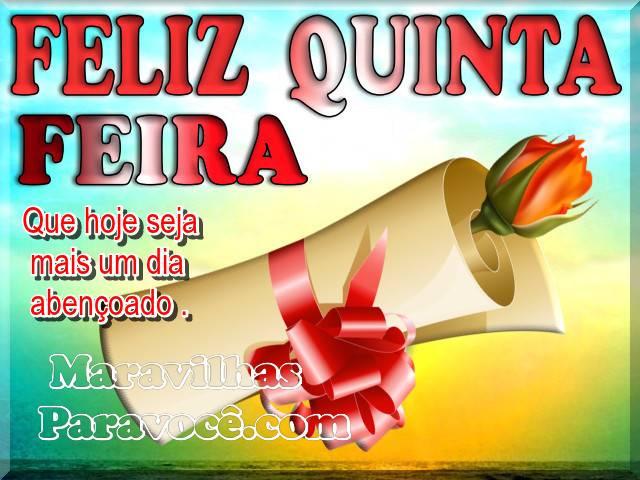 Feliz quinta-feira. Que hoje seja mais um dia abençoado