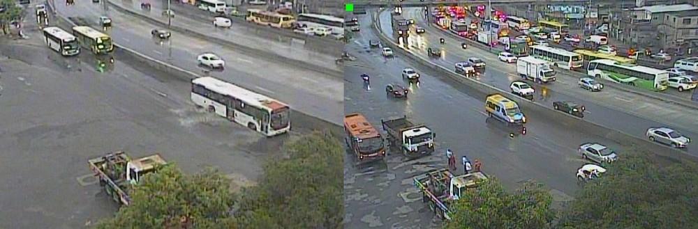 Na Avenida Brasil, uma das mais importantes vias expressas da cidade do Rio, o Centro de Operações registrou bolsões d'água na pista lateral, sentido Centro, na altura de Benfica e equipes da CET-Rio e Comlurb foram acionadas para drenagem e escoamento da água.
