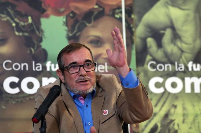 FARC leader Rodrigo Londono, shown here in Bogota, Colombia in 2018, said the government was in violation of its peace deal with the group for not providing protection. Photo by Mauricio Duenas Castaneda/EPA-EFE