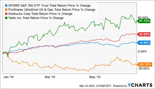 As it happened, we didn’t have a recession in 2019, and instead of slipping into a bear market, we had a v-shaped recovery in stocks, with SPY returning more than 18% over the next 6 months, while Proshares Ultrashort Oil ETF DUG dropped more than 20%.