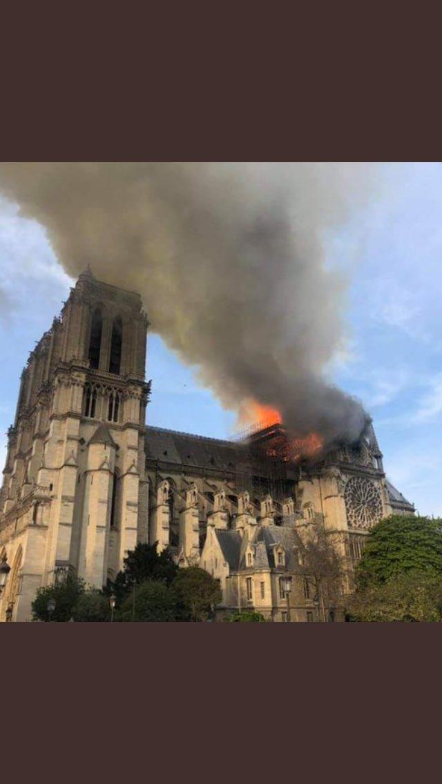 Paris’ well-known Notre Dame Cathedral caught fire just a short time ago. Dramatic images of the Notre Dame fire show a massive plume of white smoke billowing from the top of the historic landmark. News footage from the Notre Dame fire also appears to show bright reddish-orange flames shooting from the top of the cathedral.