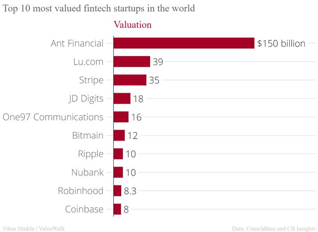 Ten most valued fintech startups