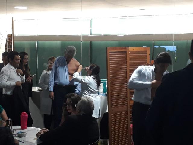 Enquanto a greve dos caminhoneiros para o Brasil, deputados aproveitam a clausura em Brasília para se vacinarem contra a gripe.