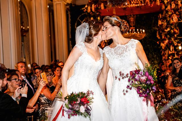 A cerimônia com rituais judaicos que uniu a farmacêutica Roberta Gradel, de 38 anos, à economista do mercado financeiro Priscila Raab, de 42, no sábado 10, sobressai entre os 280 casamentos gays já realizados neste ano no Brasil porque derrubou uma barreira simbólica: foi o primeiro a ser comemorado no Copacabana Palace, que tradicionalmente sedia as festas da alta sociedade carioca. Inaugurado há 95 anos, o Copa, como é chamado pelos mais íntimos, é um daqueles hotéis de luxo cujo glamour emana mais das histórias para as quais serviu de cenário e das celebridades que por ali passaram do que por seus pisos de mármore e seus lustres de cristal. Apenas dez anos depois de abrir as portas, foi locação de um filme com Fred Astaire e Ginger Rogers. Em seus aposentos, hospedaram-se da rainha da Inglaterra Elizabeth II ao presidente americano Dwight Eisenhower, do escritor alemão Thomas Mann ao compositor russo Igor Stravinsky, da primeira-dama argentina Eva Perón ao inventor Santos Dumont. Na boate Meia-Noite e no salão Golden Room, um dos treze usados atualmente para festas de casamento, cantaram a diva alemã Marlene Dietrich, o americano Nat King Cole e sua conterrânea Ella Fitzgerald. Ali, também, bailou e tomou porres históricos uma constelação de estrelas de cinema — como as atrizes Ava Gardner, uma das mais belas de sua geração, e Anita Ekberg, eternizada nas águas da Fontana di Trevi, em Roma, no filme La Dolce Vita, de Fellini. Nada mais apropriado do que recorrer ao símbolo quase centenário das grandes festas cariocas para celebrar um casamento do século XXI.