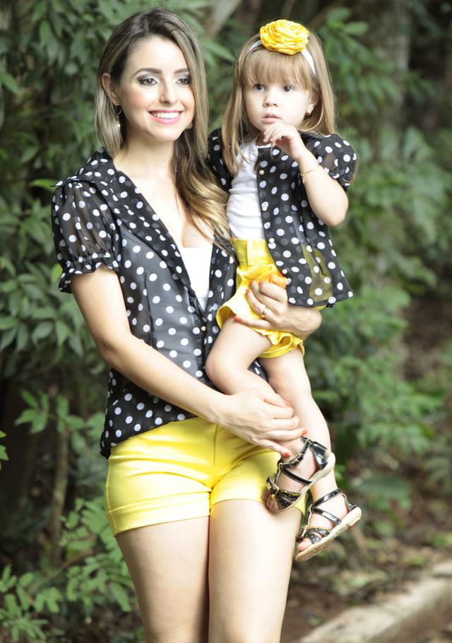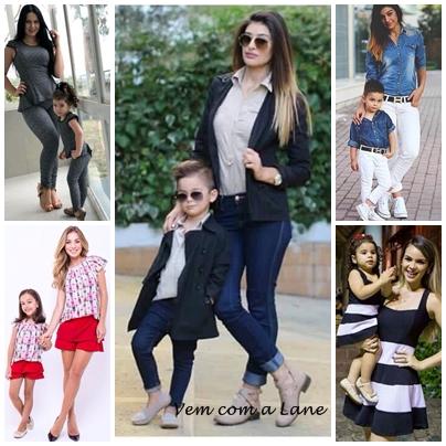 As combinações podem ser feitas não só com as roupas como também com os acessórios, como sapatos e bolsas. A moda praia também entrou na onda! Já podemos encontrar mães e filhas que combinam até mesmo as roupas de banho. Os biquínis, maiôs e sungas até mudam de modelo do infantil para o adulto, mas a estampa e cor continuam as mesmas.