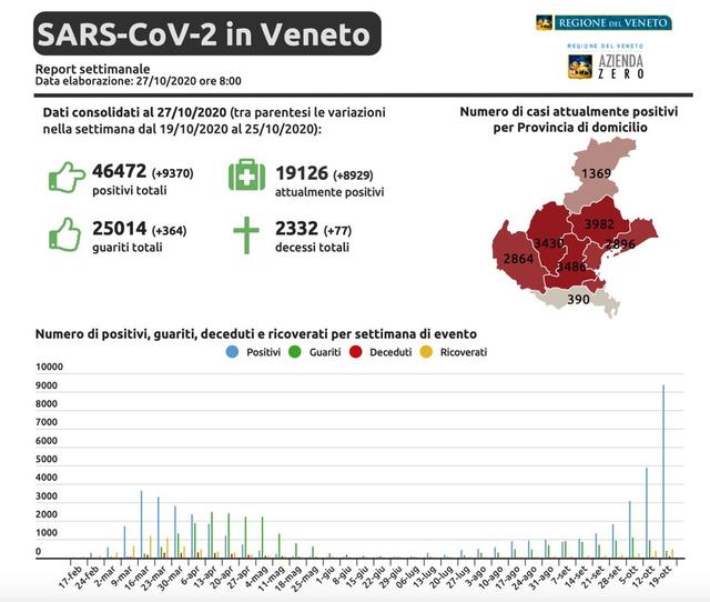 Report Regione Veneto casi e ricoveri 28 ottobre 2020 ore 8