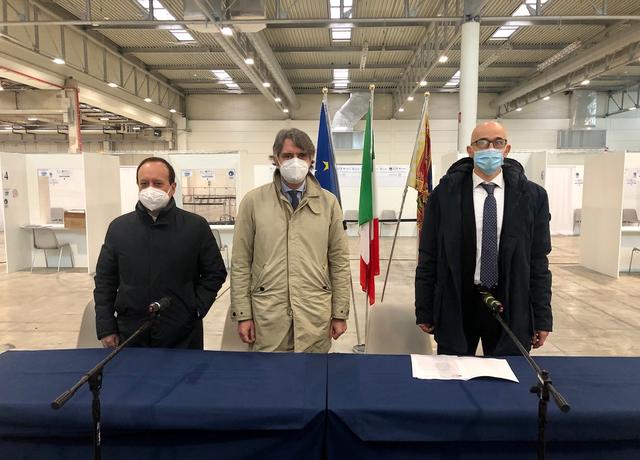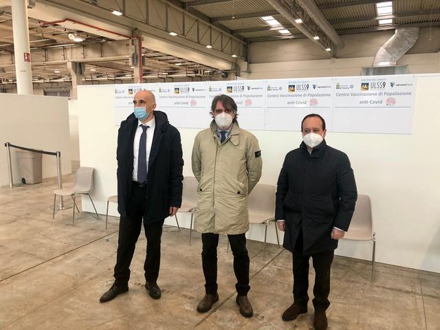 Il punto vaccini, allestito in Fiera accanto al padiglione dedicato alla postazione ‘drive-in’ per i tamponi rapidi, è stato visionato mercoledì dal sindaco Federico Sboarina insieme al direttore generale dell'Ulss 9 Scaligera Pietro Girardi e al direttore generale di Veronafiere Giovanni Mantovani.