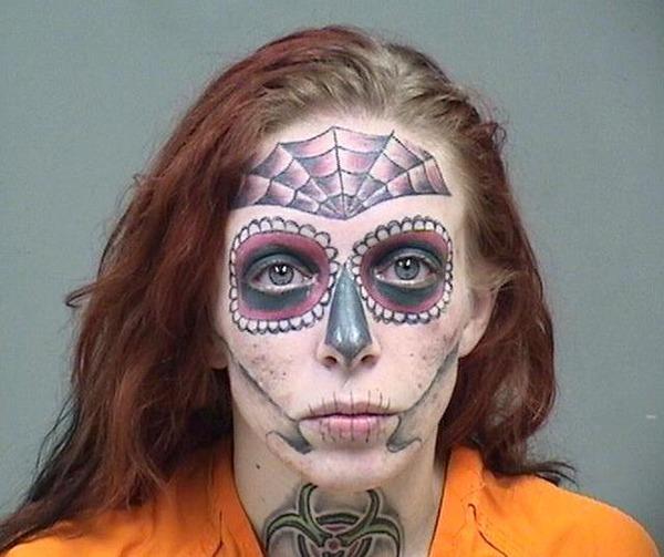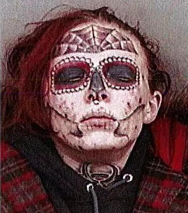 公開された写真に写っていたのは、顔面にシュガースカル(>>0�のタトゥーが入った赤毛の女性の姿。