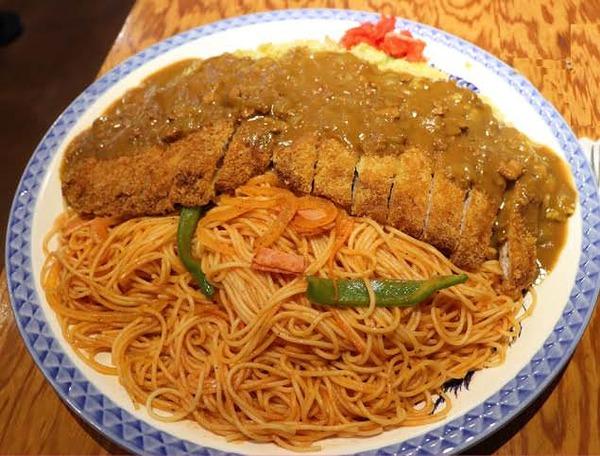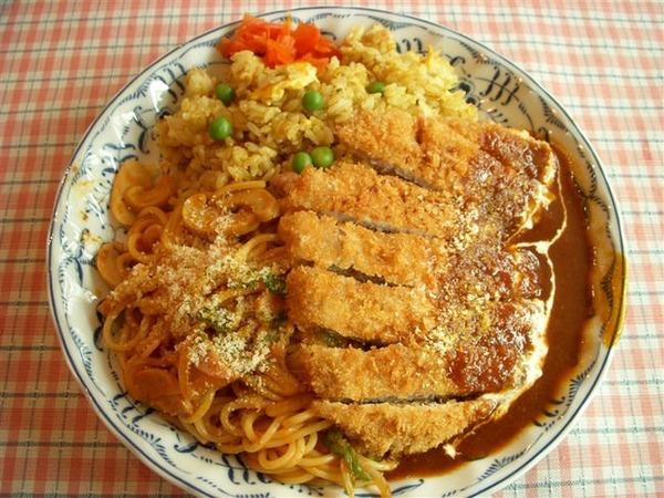 ピラフ、カレー、ナポリタン、カツを1枚の皿に盛り付けたやつらしい