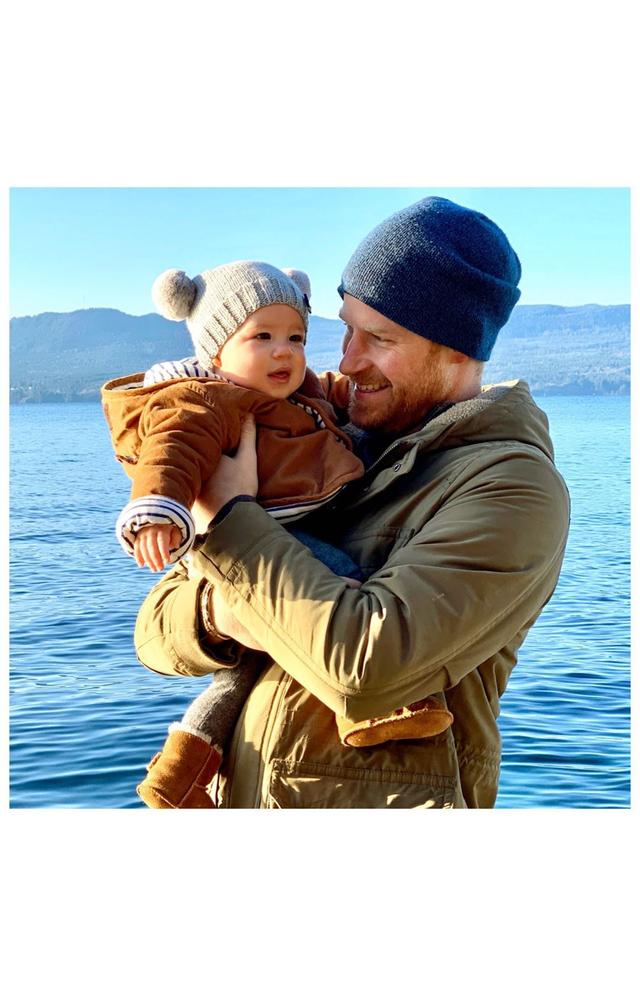 Na imagem, Archie, que já completou 8 meses de vida, aparece sorridente no colo de seu pai e uma touquinha para proteger o pequeno do frio o deixou ainda mais fofo.