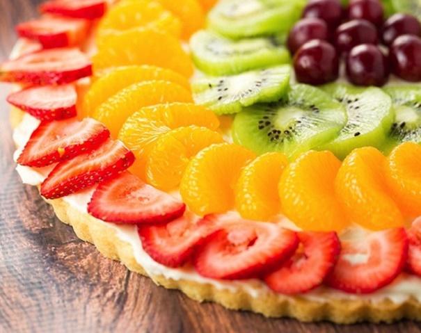 Feito isso, coloque a mistura sobre a base da massa preassada (fria) e, em seguida, decore com os pedaços de fruta.