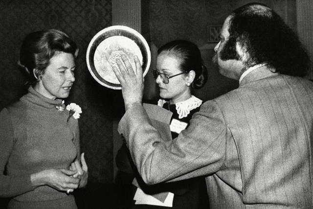 The actual incident went down at the Women’s National Republican Club Luncheon at the Waldorf Astoria hotel in New York City. Kay got in with a fake press pass under the pseudonym “David Simon,” in reference to the nursery rhyme “Simple Simon met a pieman.” He wore a borrowed suit to slide into a sea of “Republican slime.” He nevertheless stuck out, because unlike his Mrs. America counterpart, he had an unkempt mustache and collar-length hair, unlike the clean-cut crowd. And he had a paparazzi photographer by his side.