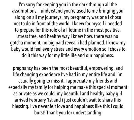 My pregnancy was one I chose not to do in front of the world. I knew for myself I needed to prepare for this role of a lifetime in the most positive, stress free, and healthy way I knew how.