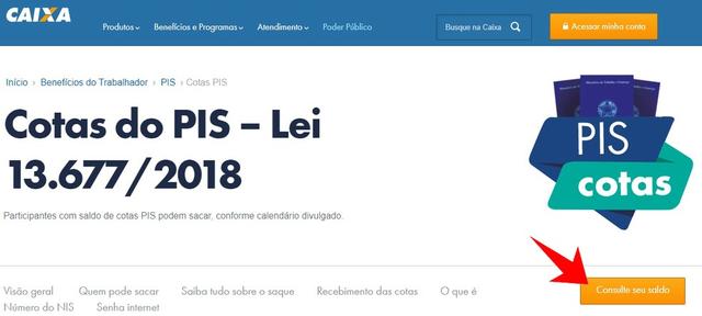 Passo 1. Acesse o site www.caixa.gov.br/cotaspis e selecione o botão “Consulte seu saldo”;