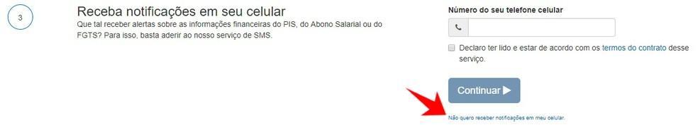 Passo 4. Caso queira, digite seu telefone para receber novidades da Caixa no celular. Você pode pular esta etapa selecionando a opção “Não quero receber notificações no meu celular”, abaixo do botão "continuar";