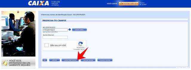 Passo 1. Acesse o site https://servicossociais.caixa.gov.br/internet.do?segmento=CIDADAO01, digite seu NIS e pressione o botão “Cadastrar senha”;