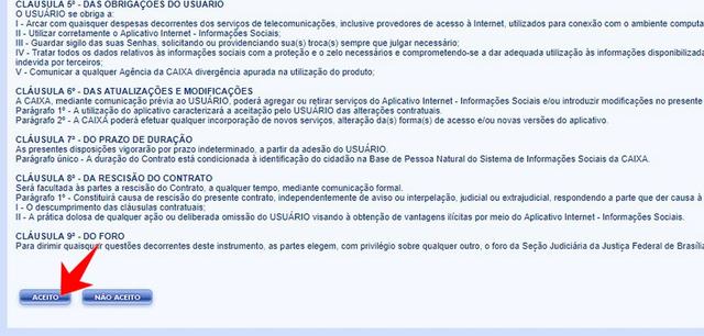 Passo 2. Você deverá aceitar os termos de responsabilidade para continuar;