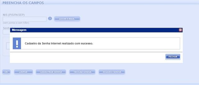 Passo 4. Uma janela de confirmação informará que a senha foi cadastrada.