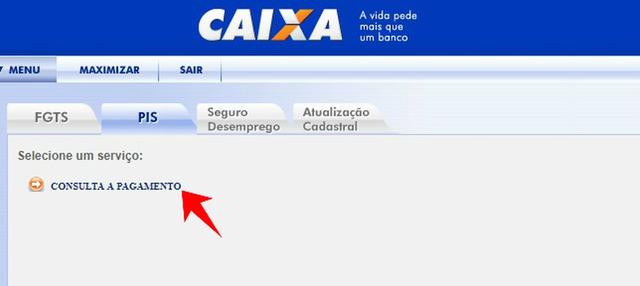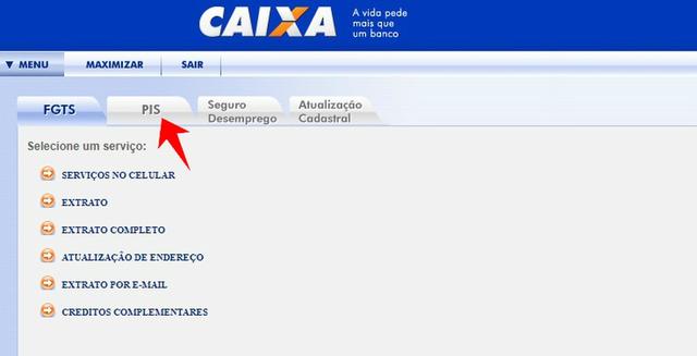 Passo 2. No Menu de benefícios da Caixa, escolha a opção “PIS”;