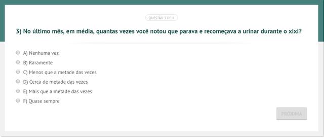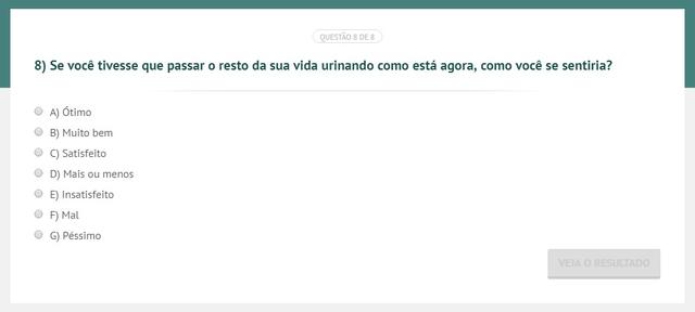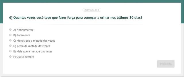 O teste não substitui a necessidade de visitar o médico. Esta avaliação foi baseada no Escore Internacional de Sintomas Prostáticos (IPSS).