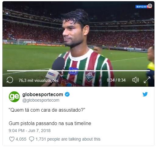 "Assustador". Foi dessa maneira que as redes sociais do Flamengo celebraram a vitória sobre o Fluminense - 2 a 0 no clássico de Brasília, gols de Henrique Dourado (pênalti) e Felipe Vizeu. A manchete rubro-negra brinca com a rebatida de Gum em entrevista ao repórter do SporTV no intervalo do jogo.