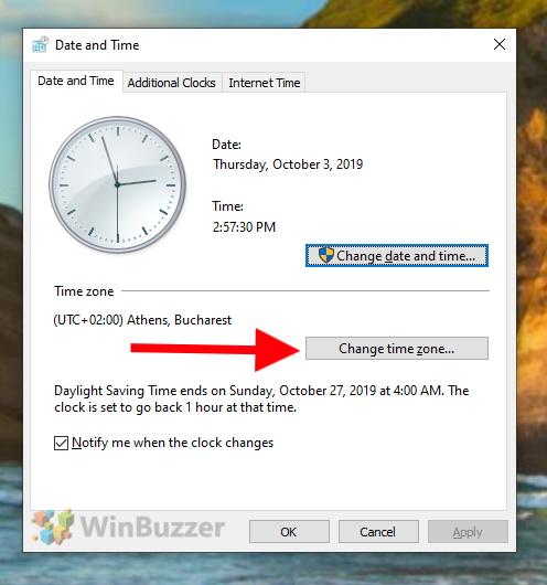 Windows 10: Changing Time Zone