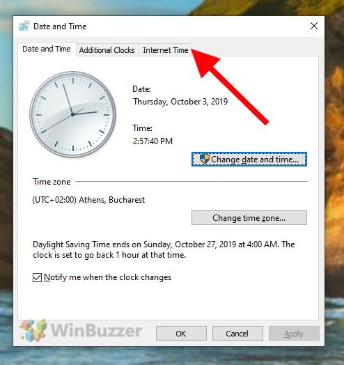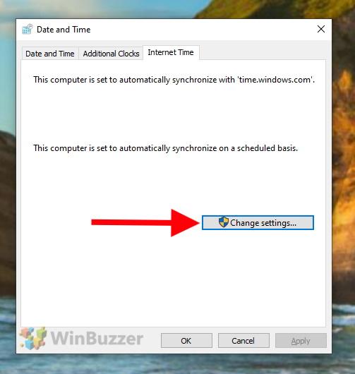 In the main window of “Date and Time”, switch to “Internet Time”.