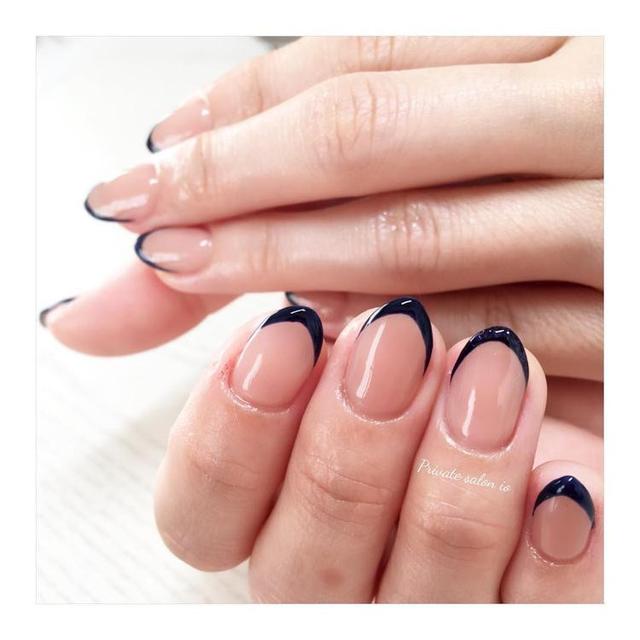 ・シンプルなネイビーフレンチはくすみ防止にも効果的
