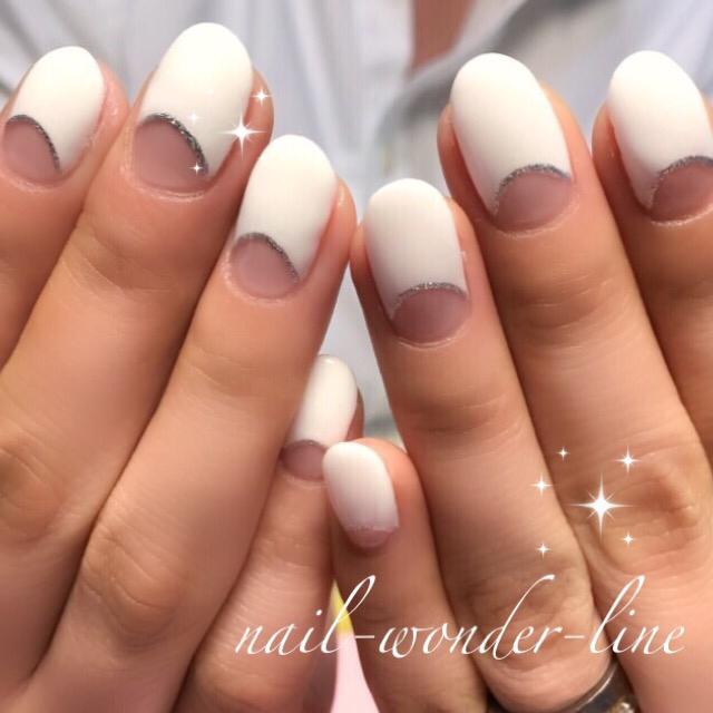 通常のフレンチネイルは、爪先に少しだけ色を加えますが、色配分を逆にするだけでこなれた仕上がりに!ヌーディーカラーと白の組み合わせなら、個性的でも派手すぎないからオフィスネイルにぴったり。