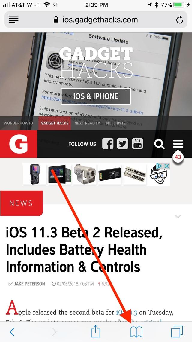 The last way to save a site to your Reading List is arguably the quickest — it just happens to be pretty hidden. While on the page you want to save, tap and hold the book icon in Safari's menu bar. When the popup appears, just tap "Add to Reading List."