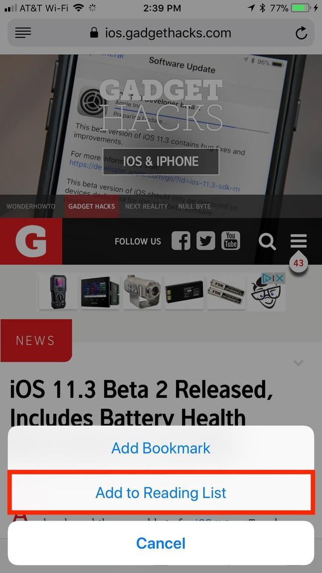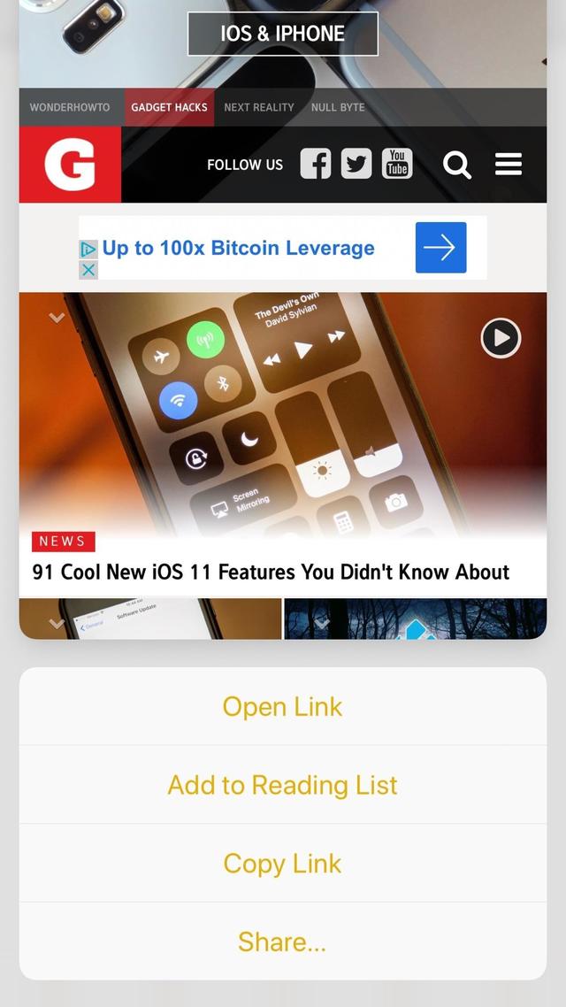 Alternatively, you can add a link to your Reading List when peeking it with 3D Touch. Just apply force to peek, swipe up to access the 3D Touch menu, then tap "Add to Reading List." Of course, this method only works for links you are peeking, not links you are currently viewing.