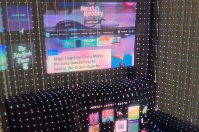 As you can see, even in this not-completely-accurate photo, the text is readable from fairly far away. Nearby, you can also see two menu carousels, one of which shows the presence of The New York Times, a Magic Leap content partner we've mentioned before.