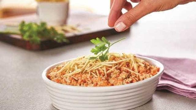 Tempere com sal, pimenta do reino e azeite a gosto e misture mais um pouco até o tempero incorporar. Leve ao refrigerador por 3 horas antes de servir.