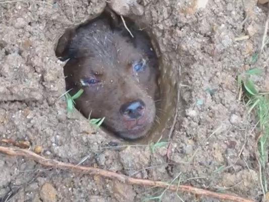 And soon, his nephew and son joined him and after 30 minutes of frantic excavating, they retrieved her from the firmly packed dirt hole, in which she was tightly wedged inside.