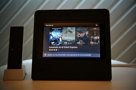 En la prueba hemos visto la utilización de los comandos "OK, Aura, recomiéndame una película" y "OK, Aura, qué ver en la tele". En estas consultas es donde entra en juego la pantalla extendida del propio Home, donde se ofrece información complementaria a la programación de televisión como horarios o sinopsis.