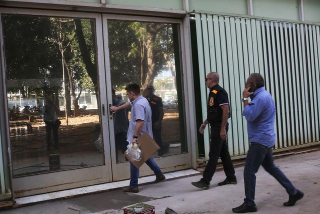 As duas salas ficam no primeiro andar do prédio que está isolado para a perícia. De acordo com a assessoria de imprensa do ministério, em uma delas objetos foram quebrados, estão jogados no chão e os armários foram remexidos. Na outra, há portas de armários abertas.