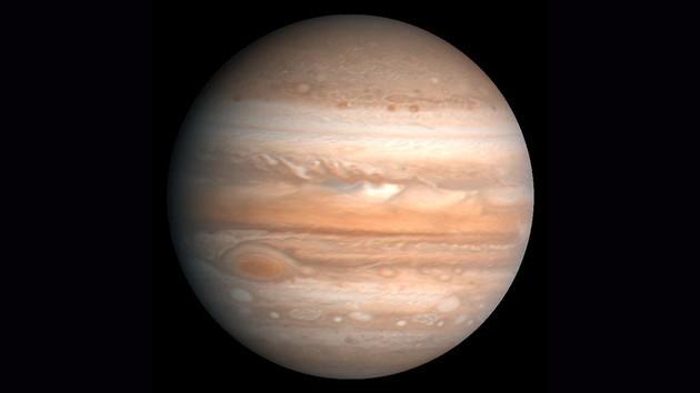 Mais longe do sol, passando por um anel de asteroides, está o maior planeta do nosso sistema solar: Júpiter, o primeiro dos planetas gigantes gasosos.