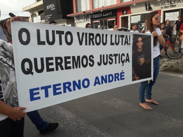 André foi morto durante uma abordagem policial em Joinville, na segunda-feira (27/1). Inconformados, parentes e amigos fizeram um protesto na cidade três dias depois aos gritos de “André”, “justiça” e “polícia assassina”.