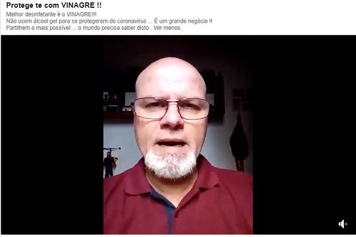 Circula nas redes sociais um vídeo de um homem que informa que o álcool gel não é uma forma eficiente de higienizar a mão contra o vírus SARS-Cov-2, que causa o Covid-19. No vídeo, ele diz que a forma mais eficaz de se proteger do vírus é substituir o álcool por vinagre. Por meio do projeto de verificação de notícias, usuários do Facebook solicitaram que esse material fosse analisado. Confira a seguir o trabalho de verificação da Lupa: